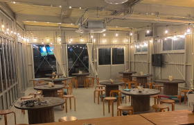 全天候型の浜焼き小屋にて「名物の浜焼き」を体験しながらお召し上がり頂けます。