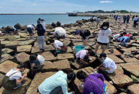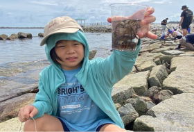 原釜尾浜海水浴場となりの人工磯で磯ガニ釣り。子どもから大人まで楽しめます。